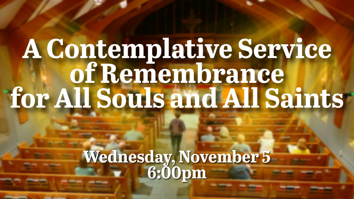 A Contemplative Service of Remembrance for All Souls and All Saints Wednesday, November 5, 2025 6:00pm Choirs in the All Saints Choir School help present music in this contemplative service. Through prayer and silence, light, and music we remember and celebrate the lives of those who have died. At the service, you may bring a photo of your loved one for the altar and/or light a candle for them. You may also submit the name of your loved one to be read in the service. To submit a name the week before the service, email office@allsaintsbhm.org